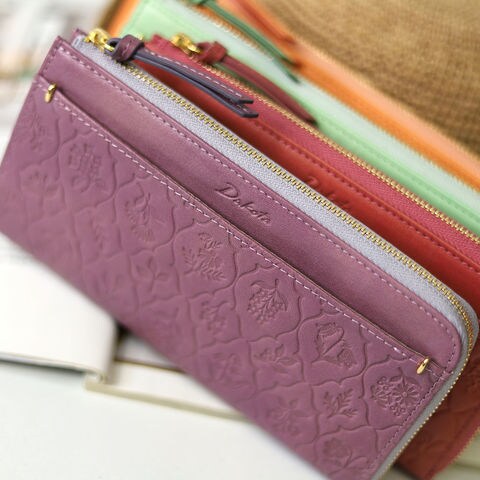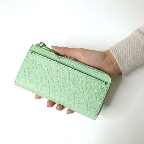 古い植物図鑑をイメージした草花モチーフのエンボス柄を施し ナチュラルで優しい印象に仕上げています。素朴で愛らしい花柄がさりげなく浮かび上がり 上品で落ち着いた雰囲気を演出します。毎日使う財布にやさしい華やかさを添える Dakotaらしいデザインです。