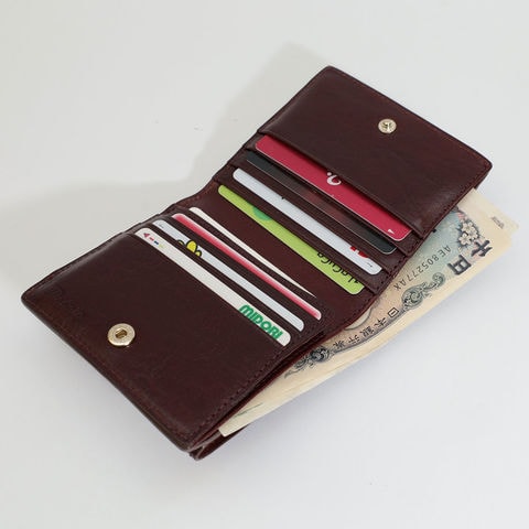 二つ折りのスリムな設計ながら、カードポケット8つ、フリーポケット3つ、お札入れも完備。ミニマルサイズでありながら、日常使いに必要な収納力をしっかり確保しています。