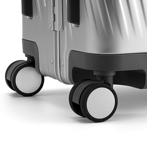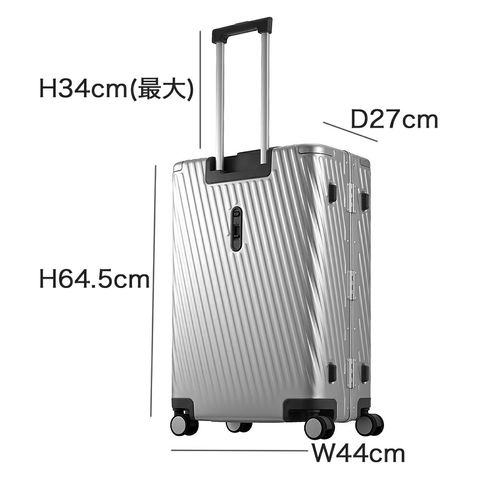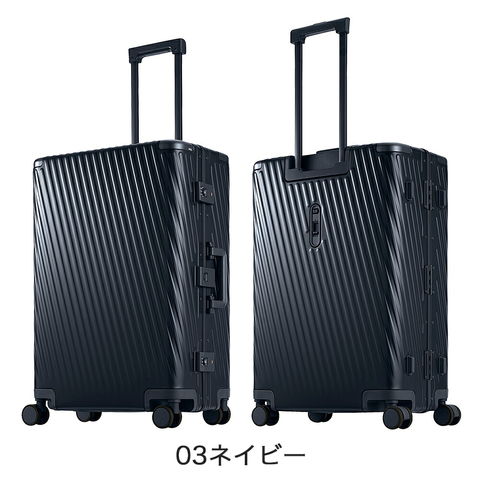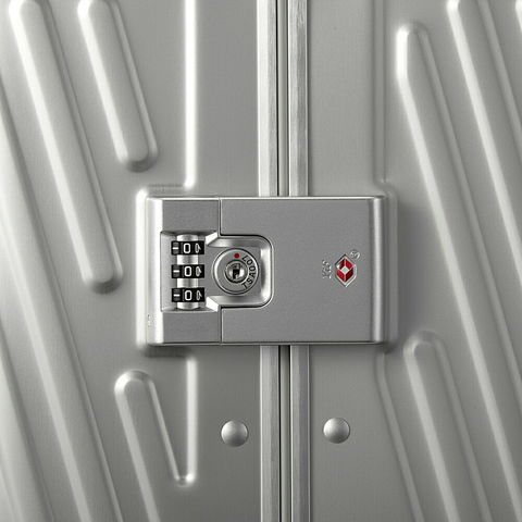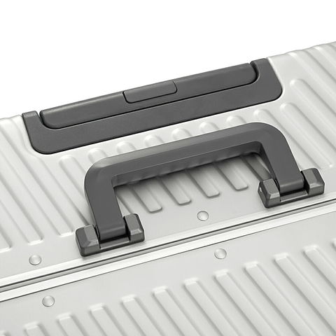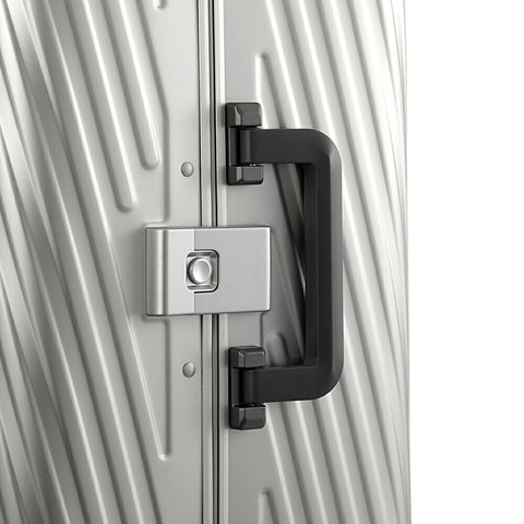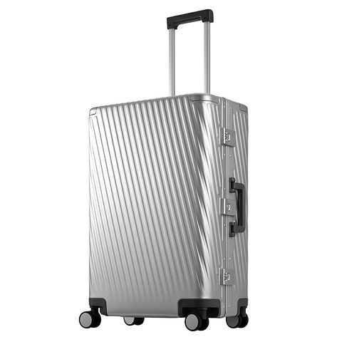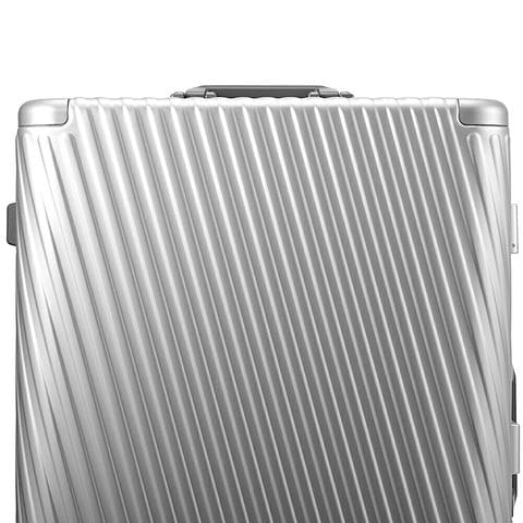 斜めのリブが美しくフェードアウトするアルミニウムボディのスーツケース