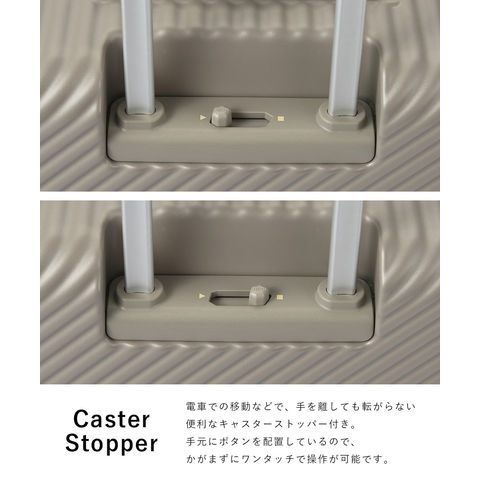 電車での移動などで、手を離しても転がらない便利なキャスターストッパー付き。