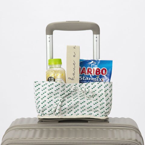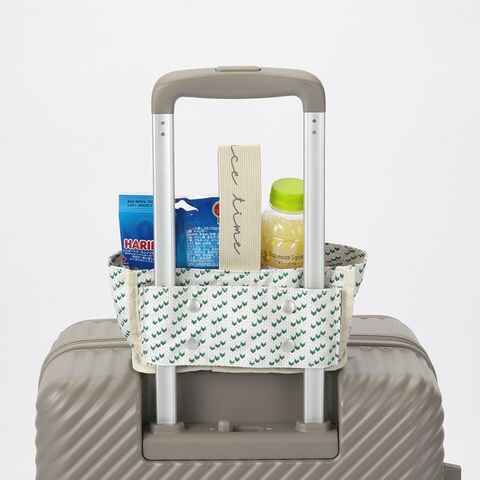 ちょっとした小物入れやドリンクホルダーとして、手がふさがりがちな移動中にスーツケースのハンドルに取り付けたり、取り外して旅先のミニバッグとしてもお使いいただけます。