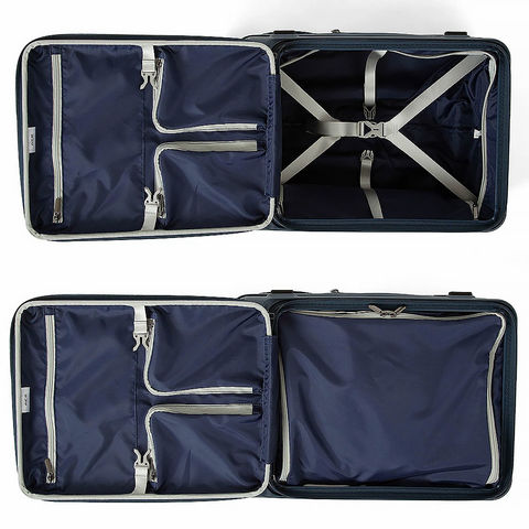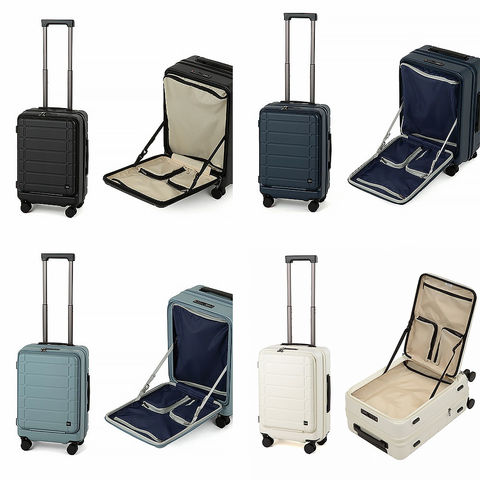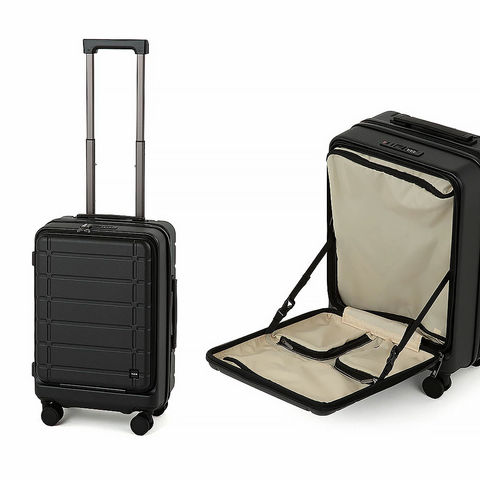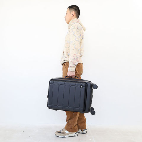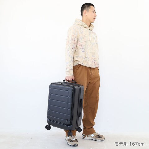 移動中でもさっと荷物を取り出せる完全フロントオープンタイプ。PCや羽織物、お土産などの出し入れがしやすく、空港や移動中のストレスを軽減します。仕分けもしやすく、使い勝手の良さが際立ちます。