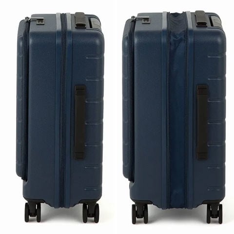 完全フロントオープン構造を採用し、立てたまま荷物を取り出せます。空港やホテルの狭いスペースでもケースを大きく広げる必要がなく、上着やポーチ、ガジェットなど必要な物をすぐ取り出せる便利な仕様です。