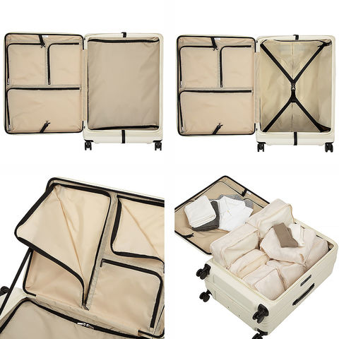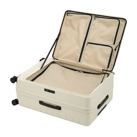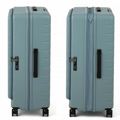 フロント部分が大きく開くフロントオープン設計で、移動中でも荷物の出し入れがしやすいスーツケース。空港やホテルなどスペースが限られた場所でもバッグのように荷物を取り出せます。必要な物をすぐに取り出せるため、長時間の移動でも快適に使えます。