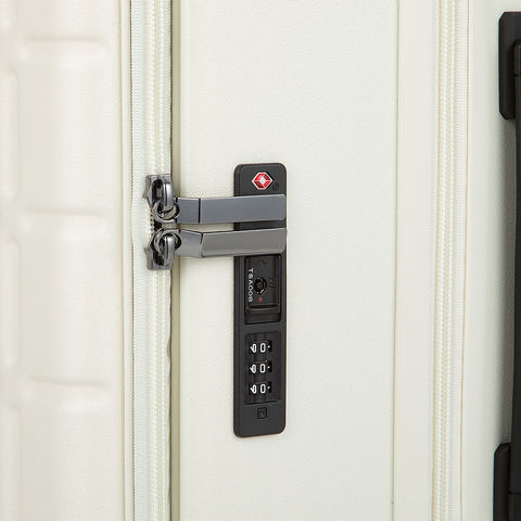 本体には耐衝撃性に優れたポリカーボネート素材を採用。軽量ながらしっかりと荷物を守ります。さらにTSダイヤルファスナーロックを搭載しているため、施錠したまま預け入れが可能。鍵を持ち歩く必要がないダイヤル式で、安心して旅行を楽しめます。
