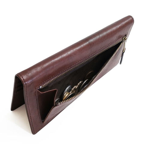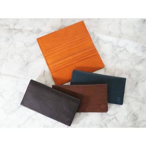 0.8ミリと薄く漉いた革で仕立てたスリムな長財布です。