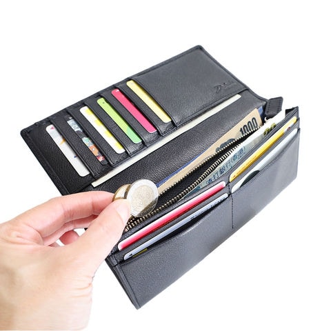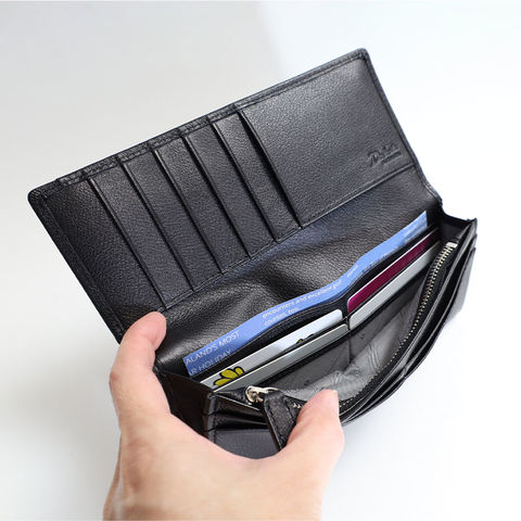 カードポケットは14枚分、さらに背面や小銭入れ前にもポケット付き。整理整頓がしやすく、実用性を重視する方にも満足の収納力です。
