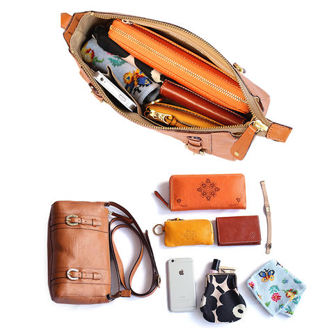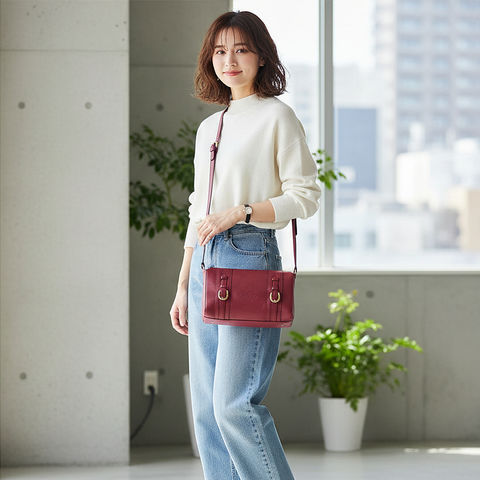 ころんとした見た目からは想像できない収納力。長財布がちょうど収まるサイズ感で、必要なものを無理なく持ち歩けます。コンパクトさと実用性を両立し、日常使いに心地よいバランスです。