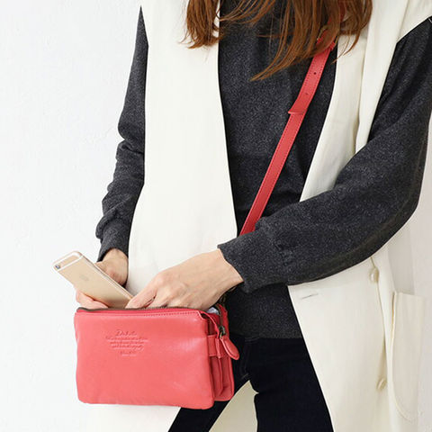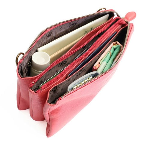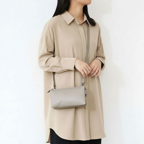 ショルダーバッグとお財布が一体となった構造で中央ポケットには現金やカードを収納できるお財布機能を備えています。収納スペースは三つに分かれており貴重品をまとめて整理しやすく必要な物をスマートに持ち運べます。これ一つで外出できる身軽さが魅力です。