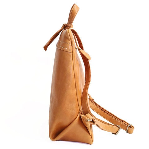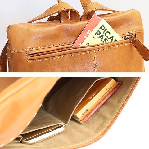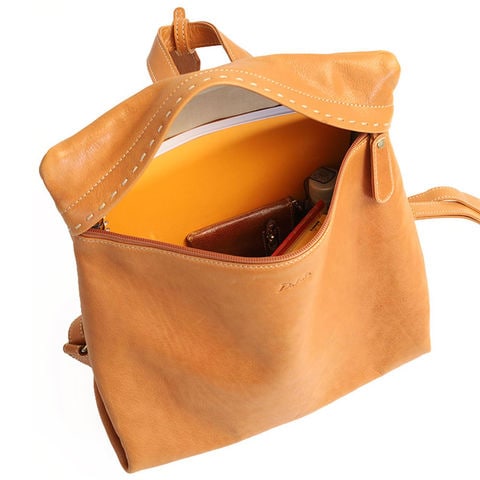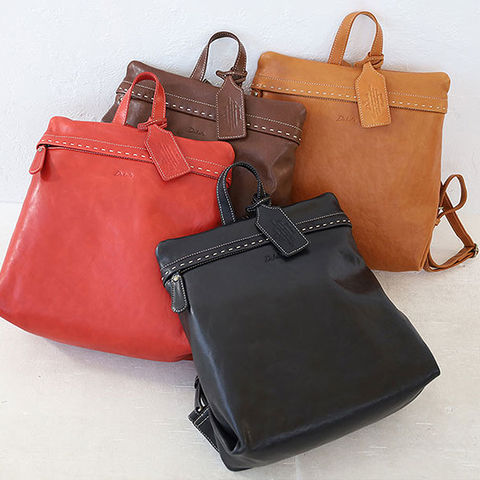 ナチュラルな革の風合いに太めの白ステッチを効かせたシンプルながら存在感のあるデザインが特徴です。カジュアルになりすぎず大人らしい落ち着きも備えているためプライベートはもちろん通勤通学でも使いやすい汎用性の高さが魅力のリュックサックです。