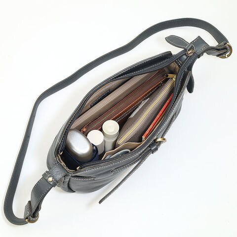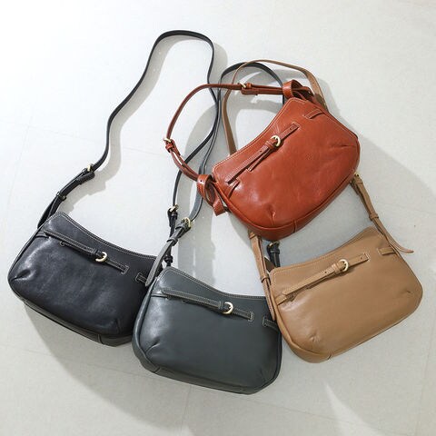 かっちりとした印象のフォルムながら、比較的柔らかな牛革を使用しています。ベルトの調整や結び方次第で、きちんと感のある装いからこなれた雰囲気まで自在に演出。キレイめにもカジュアルにも自然になじみます。