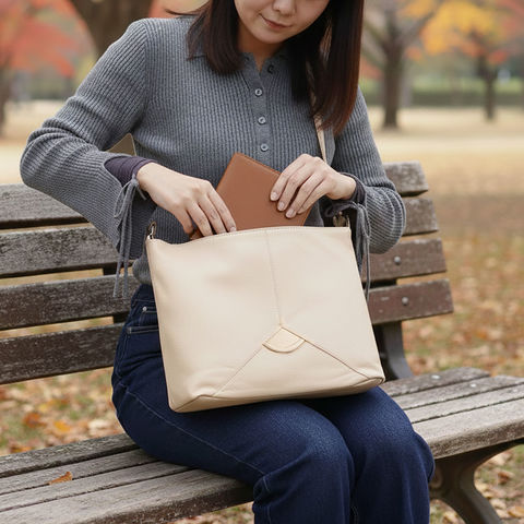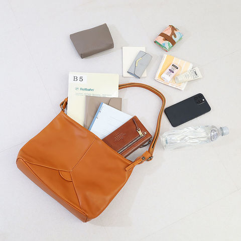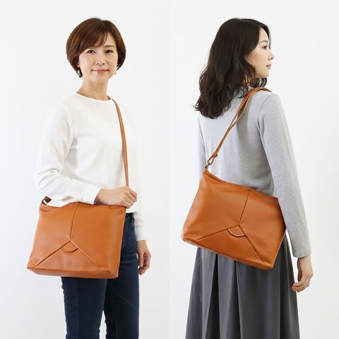 手に吸い付くようなしっとりとしたソフトレザーを使用し、幅広い世代に好まれる穏やかなタッチ感を実現。袋縫い仕立てで素材の柔らかさを最大限にいかし、見た目も手触りも優しい仕上がりに。肩に掛けても体にふんわりと馴染み、毎日の相棒として快適に使えます。