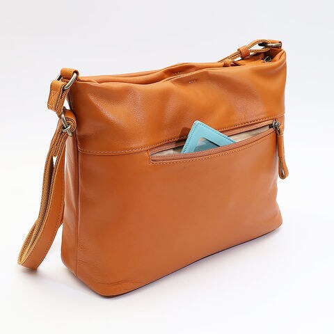 背面にもファスナーポケットを備えており、スマートフォンやカードケースなど頻繁に取り出す物の収納に便利。開閉しやすい位置にあるため、移動中でもスムーズに操作できて快適。ちょっとした外出時も安心して使える工夫がされています。