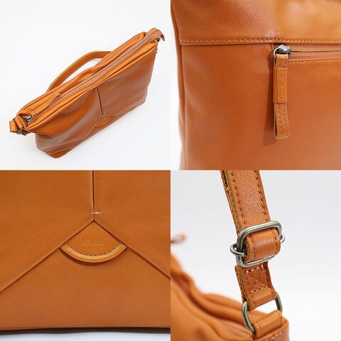 本体は柔らかいレザーながら、底面には芯材を入れることでしっかりと形をキープ。荷物を入れてもシルエットが崩れにくく、美しいフォルムを保てます。ショルダーベルトは肩掛けも斜め掛けも可能で、裏面はコットンテープ仕様。毎日頼れるバランスの良いデザインです。