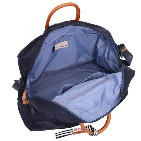 ファスナーが大きく開いて中身が一目で見えます。バッグが軽いので旅行やジム用にピッタリ。