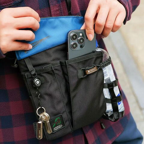 スマホ鍵サングラスなど日常の細かなアイテムを整理して持ち運べる使い勝手の良いサイズ設計です。ワンタッチで開閉できるマグネットフラップやリールカラビナ付きポケットを備え忙しい場面でもスムーズにアクセスできます。