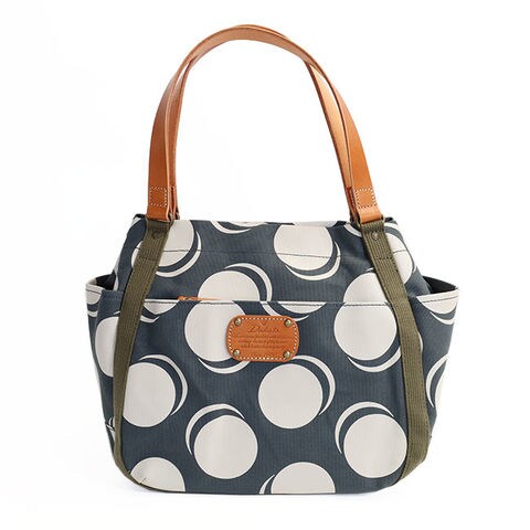 前面:ファスナーポケット×1 背面:ファスナーポケット×1 サイド:オープンポケット×2 内部:オープンポケット×2、ファスナーポケット×1 動きのある大きめのドット柄のコットンと爽やかなデニム生地に厚ヌメ革を合わせたざっくりトートバッグ。丸みのあるシンプルフォルムと、カジュアルなボディに厚ヌメ革を合わせた仕上がりが魅力的です。デザイン性はもちろん、ポケットを豊富に備えた使い勝手の良さもポイント。バラつく小物類をスッキリと整理整頓できる実用的なつくりになっています。 両サイドには500mlのペットボトルも入るオープンポケット、前後にはジップポケットを装備。アクセスしやすいポケット配置が魅力的です。 収納スペースはしっかりとしたマチ幅を備え、普段持ち歩く荷物が余裕を持ってしまえるデザインです。サイドのスナップボタンを外すことで口元が広がりA4サイズに対応。内部には小物の管理に便利なポケットが複数装備され、バッグの中をすっきりと整理していただけます。 |