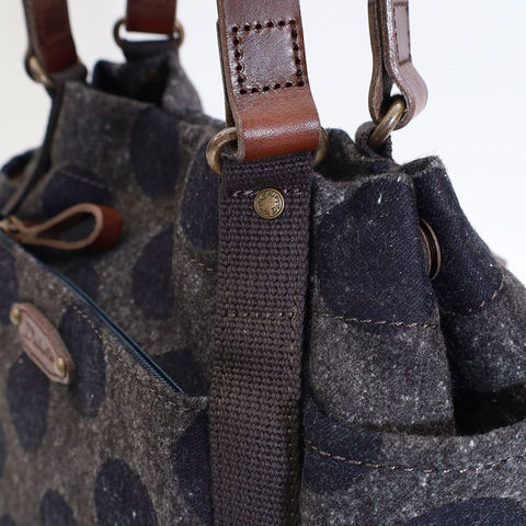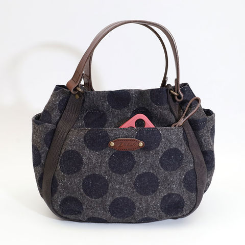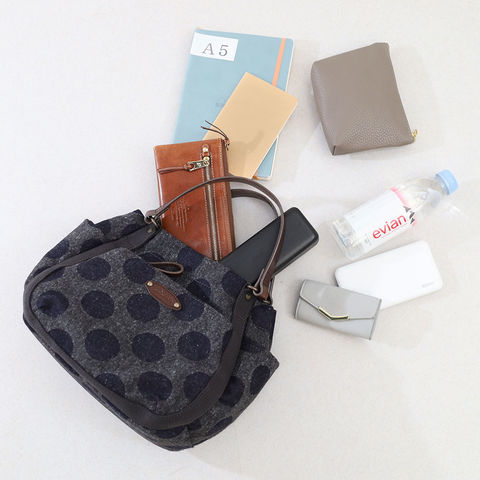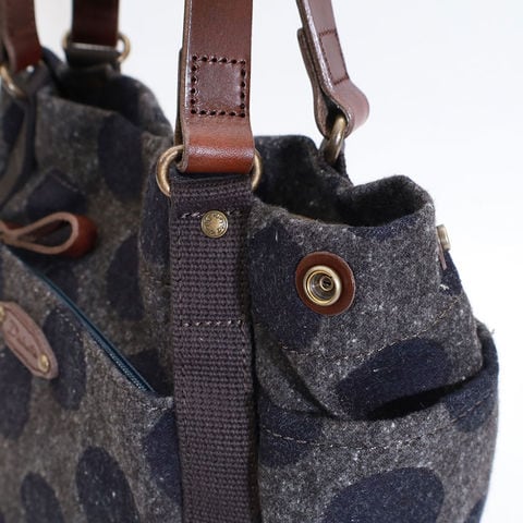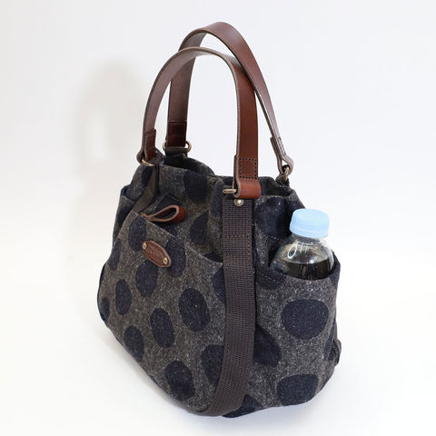 サイドのスナップボタンで2フェイス仕様に。ちょっとしたお出かけに最適な2フェイスミニトートです。小ぶりな見た目ながら、マチ幅がしっかりあるので、長財布やペットボトル、手帳などが楽に入ります。