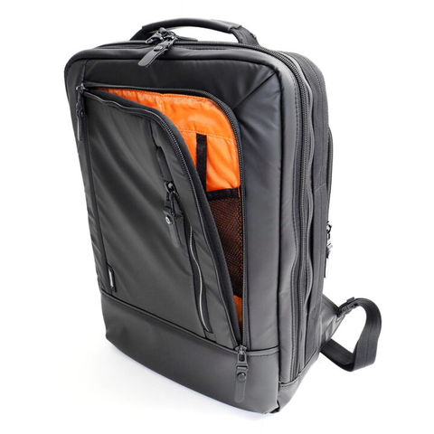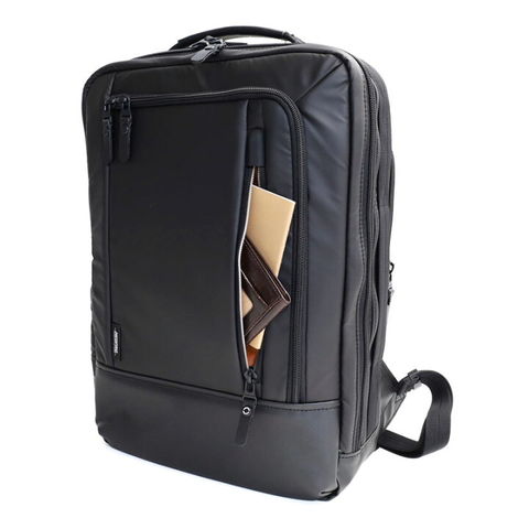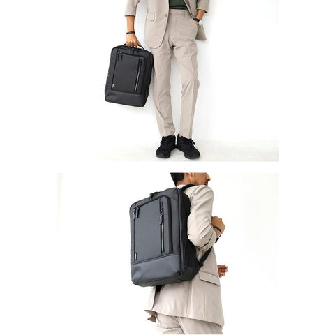 B4サイズ対応の大容量、ペットボトルや折り畳み傘、ポーチなどビジネスシーンに必要なものがしっかり収納できます。
