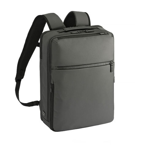 小物収納に便利なオーガナイザーポケットや、メガネなどを収納できるパイル生地のフロントポケットを装備。さらに側面と気室の両方からアクセスできる2WAYスルーポケットや、スーツケースに固定できるセットアップ機能も搭載。通勤から出張まで幅広いビジネスシーンで活躍します。