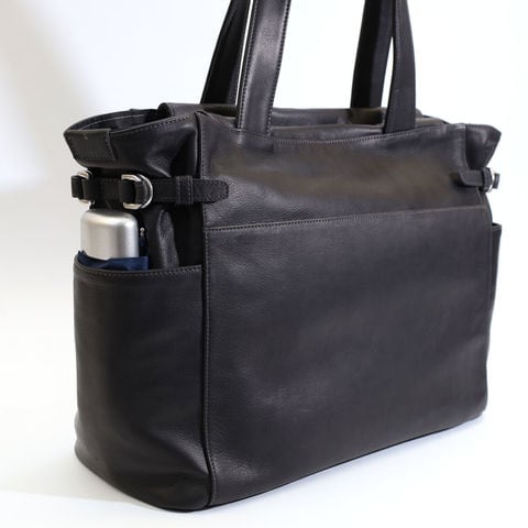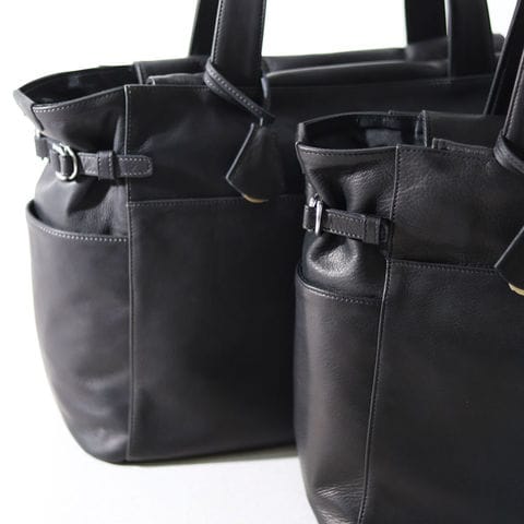 両サイドのストラップは長さ調整が可能。荷物が少ない日はスマートに、多い日にはトップを大きく開けて使えるため、シーンや荷物量に合わせて柔軟に対応できます