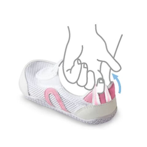 脱ぎ履きしやすいように、かかと部分の外側に付けたストラップ。
