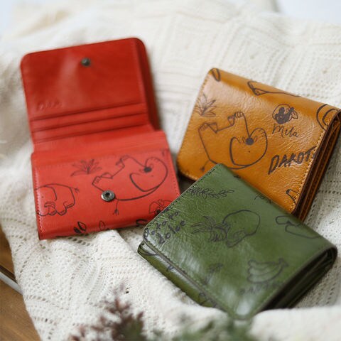 イタリア製牛革を使用した高品質な仕上がり。耐久性と上品さを備えつつ、かわいい象のイラストが遊び心をプラスし、毎日の気分を明るくしてくれます。