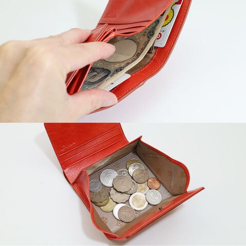 小銭入れは四方口仕様で大きく開き、中身が一目で見やすく取り出しもスムーズ。会計時のストレスを軽減してくれます。