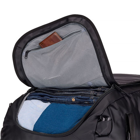 幅広開口部と複数のメッシュポケットで、荷物の出し入れや仕分けもスムーズ。パッド入りの底部やコンプレッションストラップ付きで、運搬中も安心。