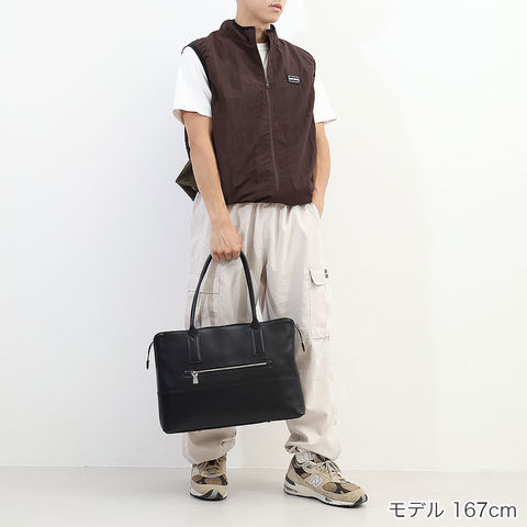 横幅37.5cm×高さ29cm×マチ11cmのしっかり入るサイズ感ながら、全体のフォルムはすっきり。ビジネスでも休日でもスタイリッシュに持てます。