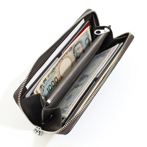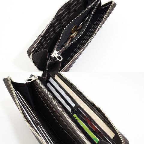 大きく開くコの字型ファスナー仕様。ファスナー付きコイン室、12枚分のカードポケット、大ポケット3つ、2層の札入れを完備し、視認性と整理力を兼ね備えています。