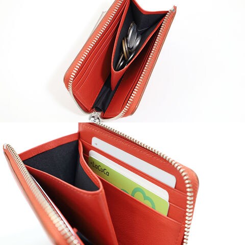 コの字型に比べて開閉がスムーズなL字ファスナー仕様。中身が見やすく、取り出しやすい快適な使用感が魅力です。