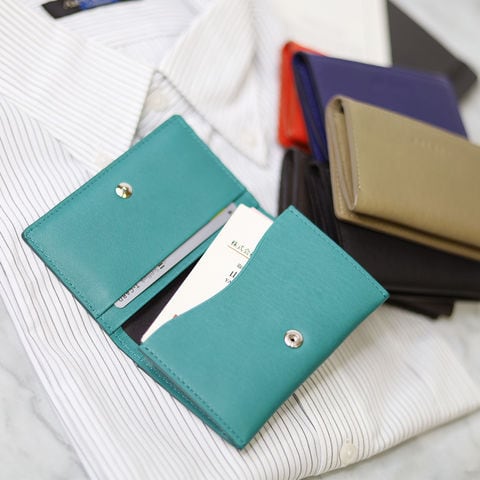 丁寧に磨き上げられたコバが端正で上質な印象を演出。名刺交換の瞬間も自信を持って差し出せる仕立ての美しさが魅力です。