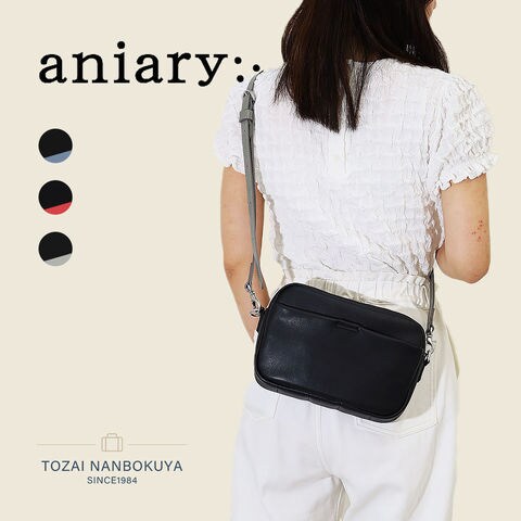 aniary アニアリ ショルダーバッグ レザー 37-03000 メンズ 5L オールシーズン お出かけ ユニセックス 小さめ 小ぶり 上質 上品 バッグ シンプル B5 スモールサイズ【ブラック×レッド】