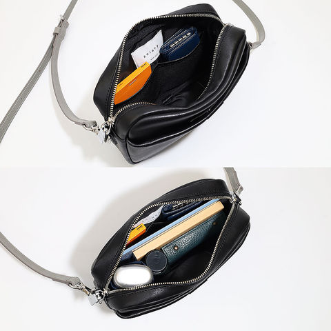 内側には仕分けしやすい2層ポケット付き。スマホやキーケース、財布などを分けて収納できて、バッグの中がすっきりします。