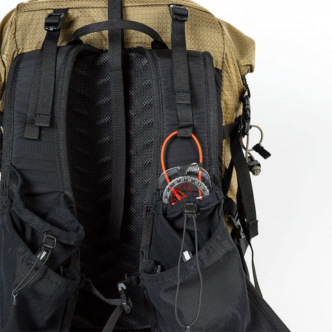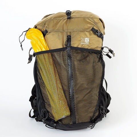 ポールキャリアやボトムバンジーコード、トップコンプレッションを装備。トレッキングポールやマット、ウェアなどを外付けでき、パッキングの自由度が向上します。長物収納にも対応し、アウトドア装備を効率よく携行できます。