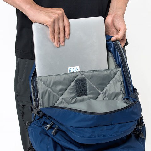 A4ファイルが入るメイン収納は日常使いに扱いやすい設計。内部にはPC収納と給水パックホルダーを備え、用途に応じて使い分けが可能です。通勤や通学、ハイキングまで幅広く対応し、必要な荷物を無理なく収められる27L容量で毎日の行動を快適にサポートします。