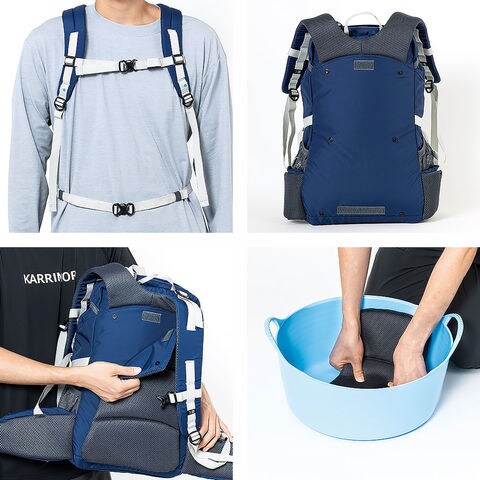 上部カバー付きの開口部は荷物量に応じて調整可能。雨の侵入を抑えながら効率よく収納できます。雨蓋内ポケットや吊りポケット、フロントポケットにより小物を整理しやすく、必要な物を迷わず取り出せるため行動中の動作を妨げません。