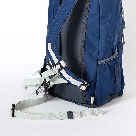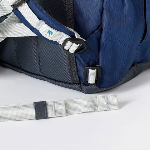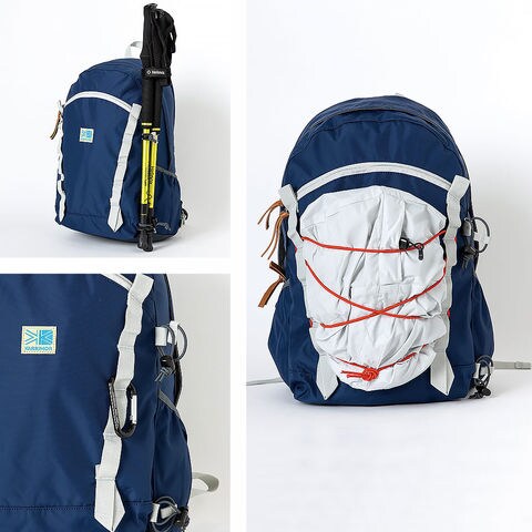 フロントのデイジーチェーンにはカラビナや小物を装着でき、トレッキングポールを固定できるポールキャリアも搭載。荷物を外側に取り付けられるため収納の自由度が高く、街使いだけでなくハイキングや旅行でも活躍します。見た目のアクセントとしても映える仕様です。
