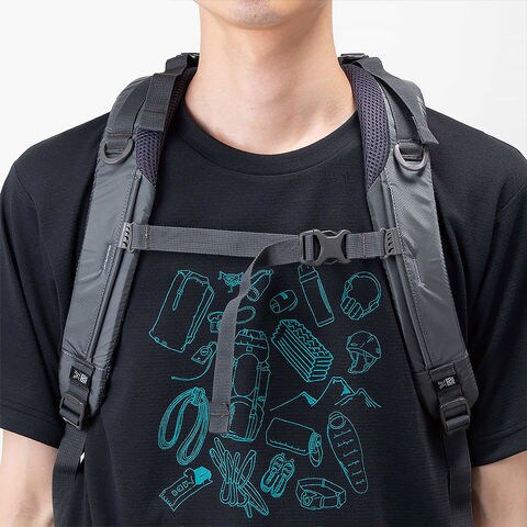 トレッキングポールを固定できるポールキャリアや小物を取り付けられるDリングを装備。ボトルポケットには飲料ボトルや水筒を収納でき、歩きながらでも取り出しやすい設計です。必要な装備をすぐ使える位置に携行できアウトドアでの行動をスムーズにします。