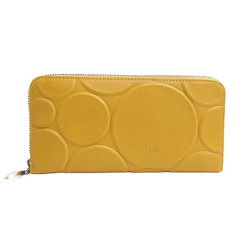 牛革に大小さまざまな円を大胆に型押しした、表情豊かなドットデザイン。ぷっくりとした凹凸が手に心地よく、視覚と触覚の両方で楽しめます。毎日使うほどに愛着が増す、存在感のある仕上がりです。