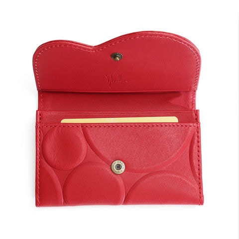 ドット柄に合わせたスカラップ風のカットを施し、やわらかく個性的な印象に仕上げています。さりげなくも他にはないデザインで、バッグから取り出した瞬間に視線を集めます。