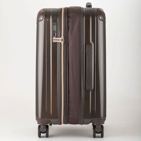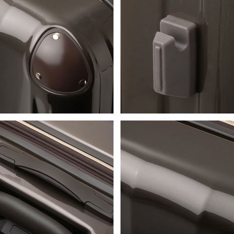 ポリカーボネートとABS樹脂を組み合わせたボディは、軽さと強さを両立。持ち運びやすく、移動時の衝撃にも強い仕様です。さらにパールパウダー入りの鏡面仕上げが上質な輝きを放ち、旅のスタイルをワンランク引き上げます。