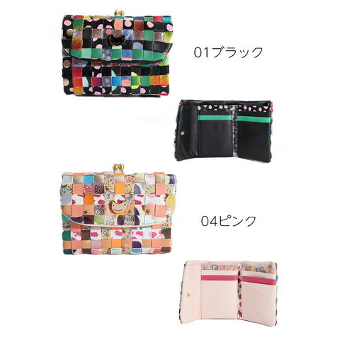 ツモリチサト tsumori chisato CARRY 折財布 がま口財布 エポネコメッシュ 財布 57641 かわいい 柄 革 ピンク イエロー グリーン ブラック きらきら 二つ折り財布 tsumori chisato サイフ 正規品 ギフト ラッピング