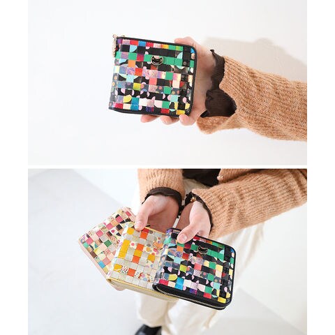 ツモリチサト tsumori chisato CARRY 折財布 二つ折り財布 エポネコメッシュ 財布 57644 かわいい 柄 革 ブラック ピンク イエロー きらきら tsumori chisato サイフ 正規品 ギフト ラッピング