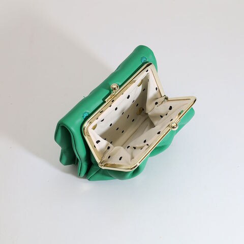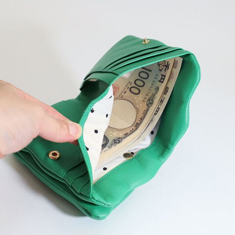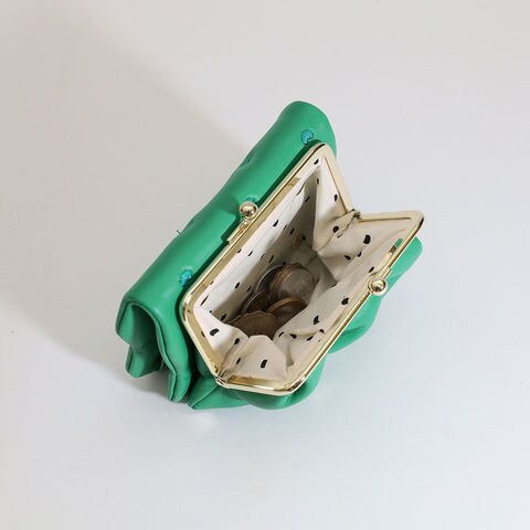 ころんと丸いシルエットが愛らしいがま口タイプ。見た目だけでなく使いやすさも兼ね備えた一品です。