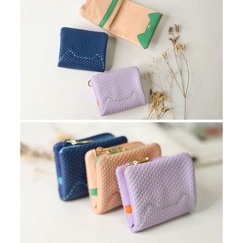 ■シリーズ案内:メッシュで編み込んだようなエンボス加工された二つ折り財布。