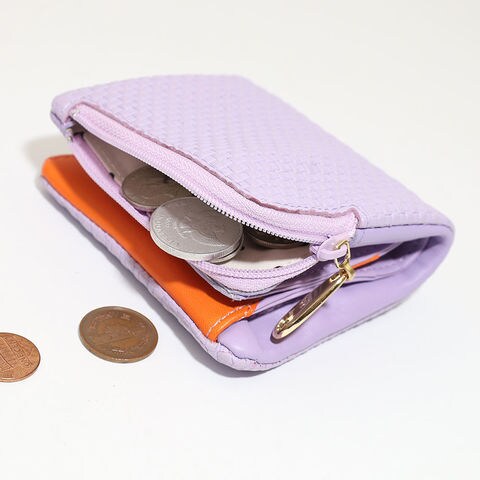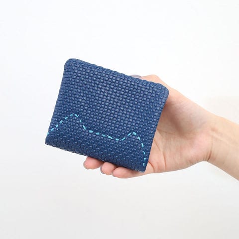 メッシュで編み込んだようなエンボス加工された二つ折り財布。