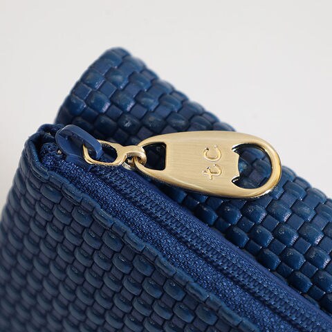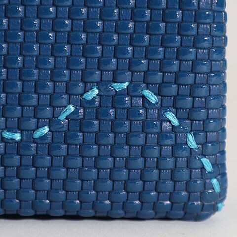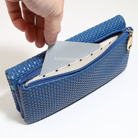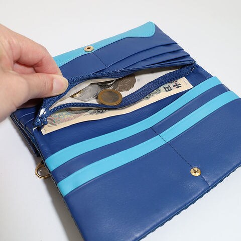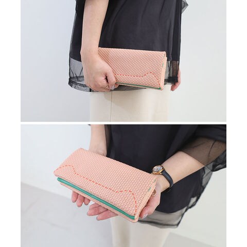 メッシュで編み込んだようなエンボス加工されたかぶせ長財布。