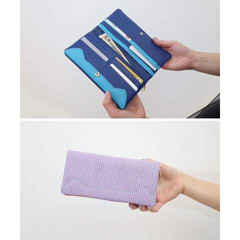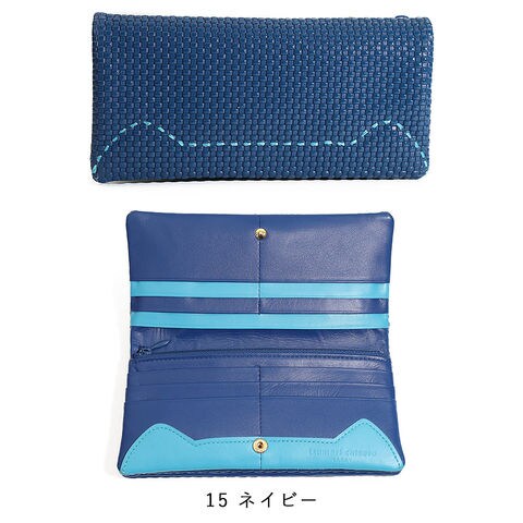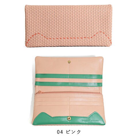 ■シリーズ案内:メッシュで編み込んだようなエンボス加工されたかぶせ長財布。